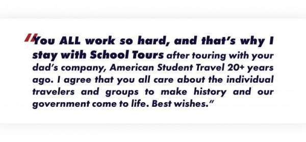 First time leading a tour? Gain confidence by touring with an experienced Group Leader on their trip before leading your own. Our Travel Buddy Program gives you the opportunity to witness first-hand just how easy it is to be a School Tours of America Group Leader!