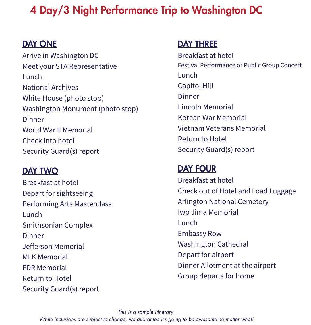 Start your musical journey in Washington DC, a city where history and culture set the stage for truly meaningful performances for your group! With opportunities to perform at some of the nation's most recognizable monuments and landmarks, student ensembles can showcase their talents in settings that are both inspiring and unforgettable. Beyond the performance, students can take in a world-class musical or concert at the renowned Kennedy Center, or experience the city from a new perspective on a night time memorial tour to see the Lincoln and Jefferson Memorials glow under the night sky. This is more than just a performance trip. It's an experience that leaves your students motivated, proud and deeply connected to the music they share and the memories they create together.