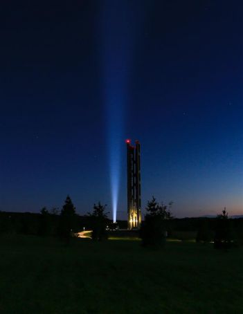 This was made possible by the donations and over 4,000 volunteers. On September 9, 2018, the final phase of construction was complete, with the installation of chimes, which were dedicated to every voice that was lost on that field. The dedication took place on September 10, 2020. There are 40 chimes installed to symbolize each voice. The musical instrument is 93 feet tall, representing Flight 93.