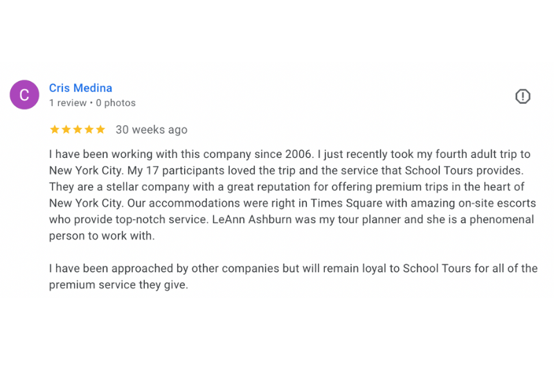 - 2. Your school must not have traveled with School Tours of America in the past 24 months.